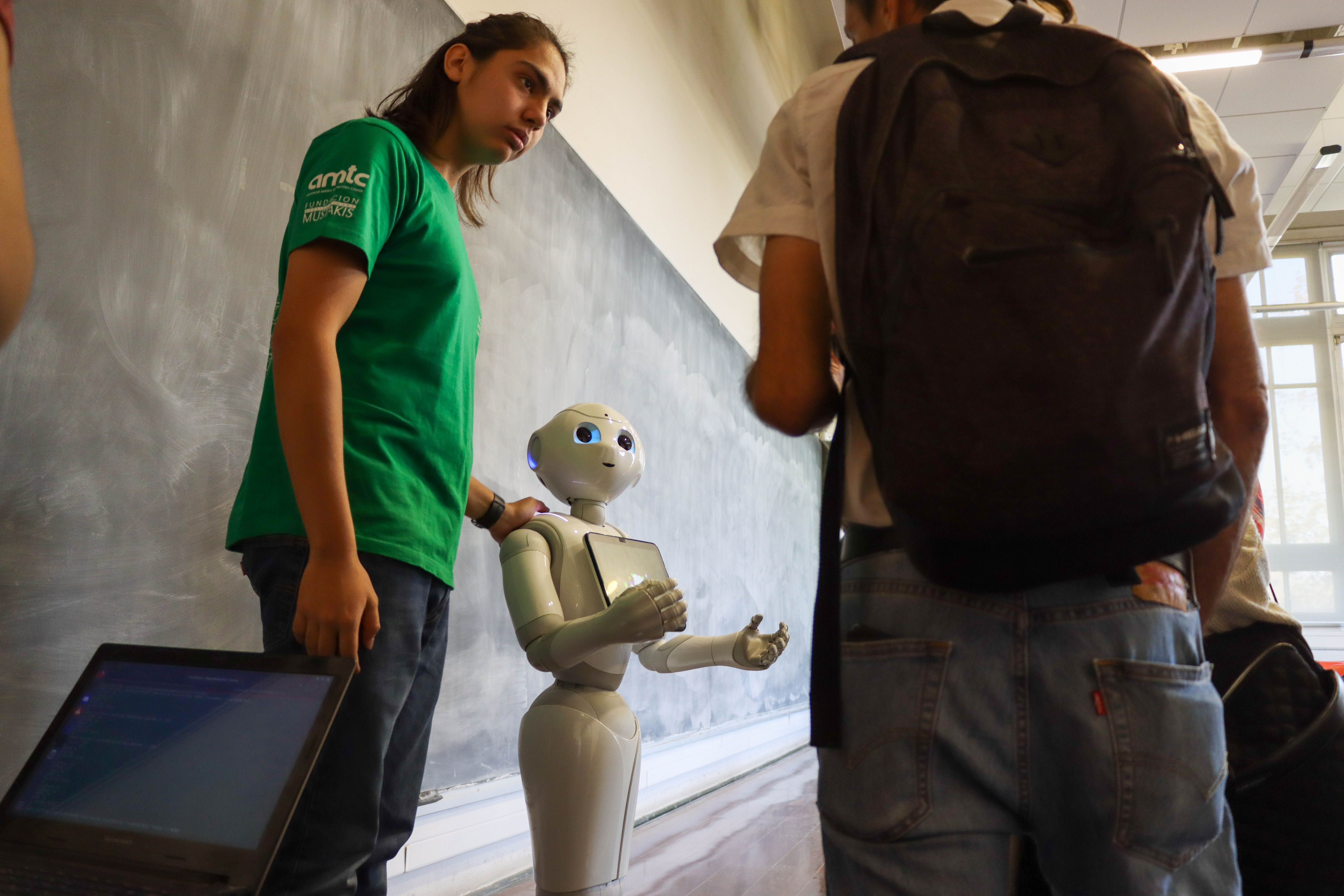 En el encuentro y como recepcionista estuvo Maqui, el robot humanoide de los estudiantes de ingeniería eléctrica Ignacio Romero, que cursa cuarto año y Matías Prieto, de quinto año de la misma carrera. Este proyecto es realizado bajo el alero del laboratorio de robótica.