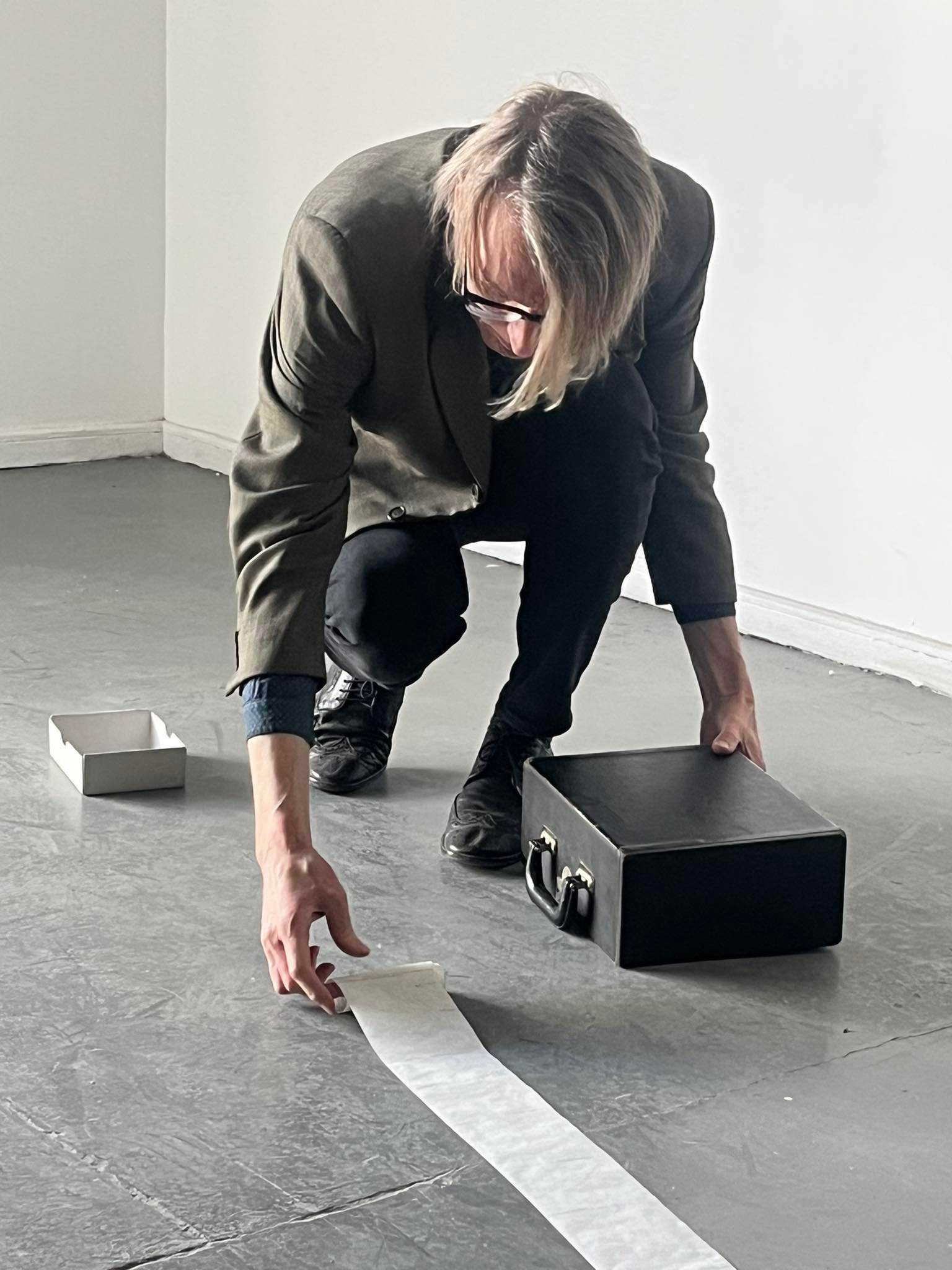 La performance de Manfred Werder está llena de decisiones que son precedidas por preguntas prácticas sobre el lugar donde se presenta. “Me cuestiono ¿Qué impone el espacio? Al menos quiero hacer visible algunos dispositivos, pero no quiero someterme a ellos”, dijo y agregó “Yo solamente puedo pensar en lo que la sala se ha prefigurado de mí como posibilidad”.