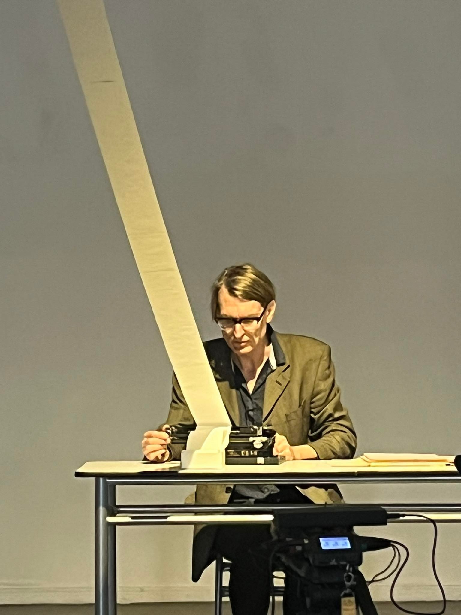 En ese sentido Werder también se refirió a la voz, un elemento que para él constituye una máquina. “Pienso que mi voz no tiene mucha diferencia entre la máquina de escribir, pero mi voz me representa más auténticamente que la máquina. Entonces yo creo que también la voz es un medio transformado, es un aparato de control, de autocontrol, de represión, por eso intento con mi voz, no fingir otra voz”.