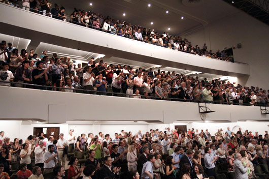 "Poca gente sabe lo bello que es ver y oir la música en vivo. En este cumpleaños de la Orquesta le deseo lo mejor e invito a todos los chilenos a venir más seguido a disfrutar de este verdadero patrimonio de la nación", Celia Delgado, secretaria, asiste cada viernes a ver a la Sinfónica.