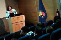 "De alguna forma nos vamos sacando esa investidura de académicos cuando empezamos a trabajar con la comunidad, cuando aprendemos a observar, a escuchar, a respetar los silencios de la gente, a contener las lágrimas; cuando tratamos de comprender la magnitud de las pérdidas, el dolor, el arraigo por la tierra; cuando buscamos acompañarlos en sus procesos de duelo, alegrarnos con su logros y, básicamente, estar ahí como personas, como amigos. Cuando creamos vínculos a partir de la confianza y el respeto". Estas reflexiones expresadas por la Psicóloga Adriana Espinoza, del proyecto "Educación para la Integración Social de la Población afectada por la erupción volcánica en Chaitén", hicieron eco en el auditorio donde se congregaron los ejecutores de los proyectos beneficiados el año 2011 y 2012 con los dos fondos concursables que promueve la Vicerrectoría de Extensión de la U. de Chile: Valentín Letelier y U-Cátedra Indígena, éste último enmarcado en el proyecto del mismo nombre.