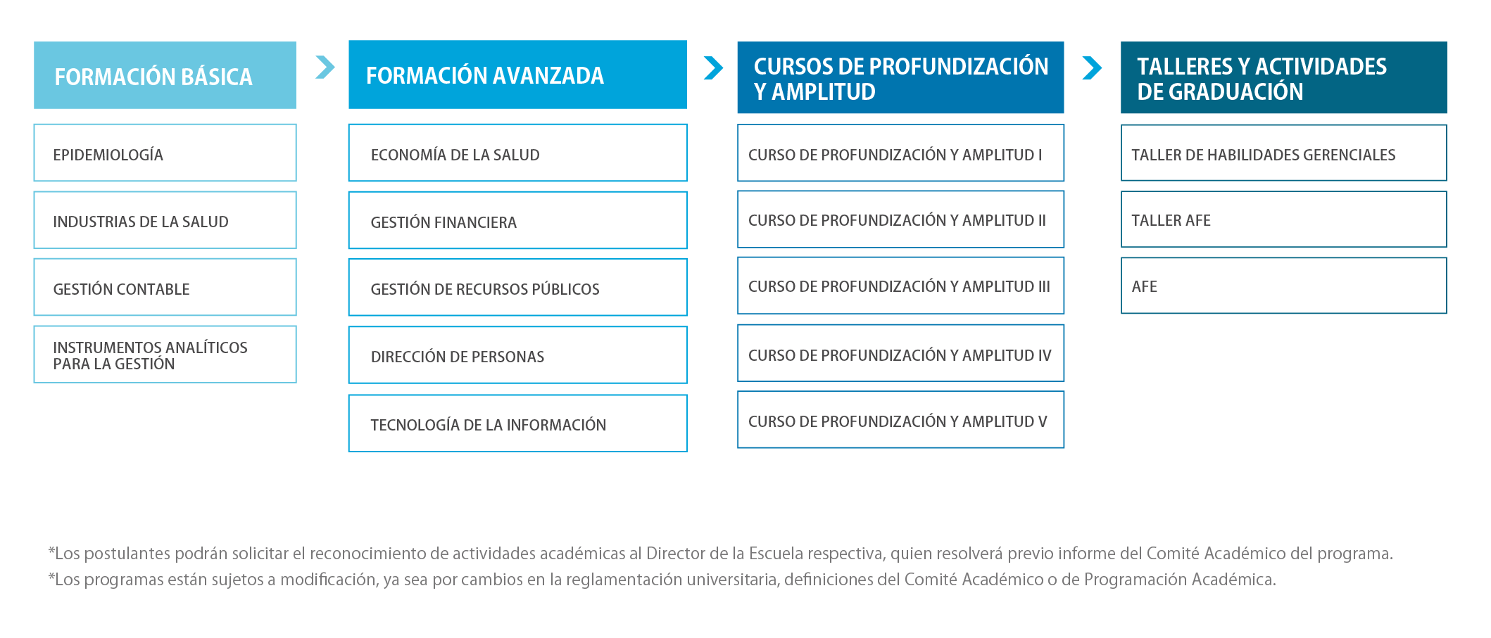 El Magíster en Administración de Salud (MAS) es un programa interdisciplinario y tiene como objetivo fundamental formar graduados con un dominio en profundidad de las disciplinas de la administración aplicada al campo de la salud. Se realiza en conjunto con la Escuela de Salud Pública de la Universidad de Chile.